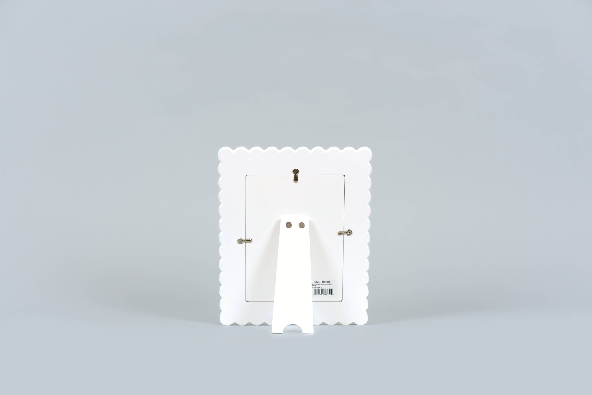 8x10x1 wood photo frame (SCALLOP) holds 5x7 photo, white Lots of raised wooden dimension with this one. Classic.