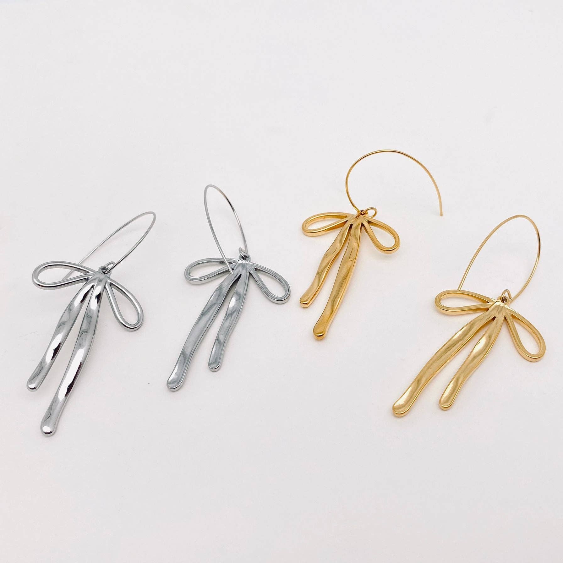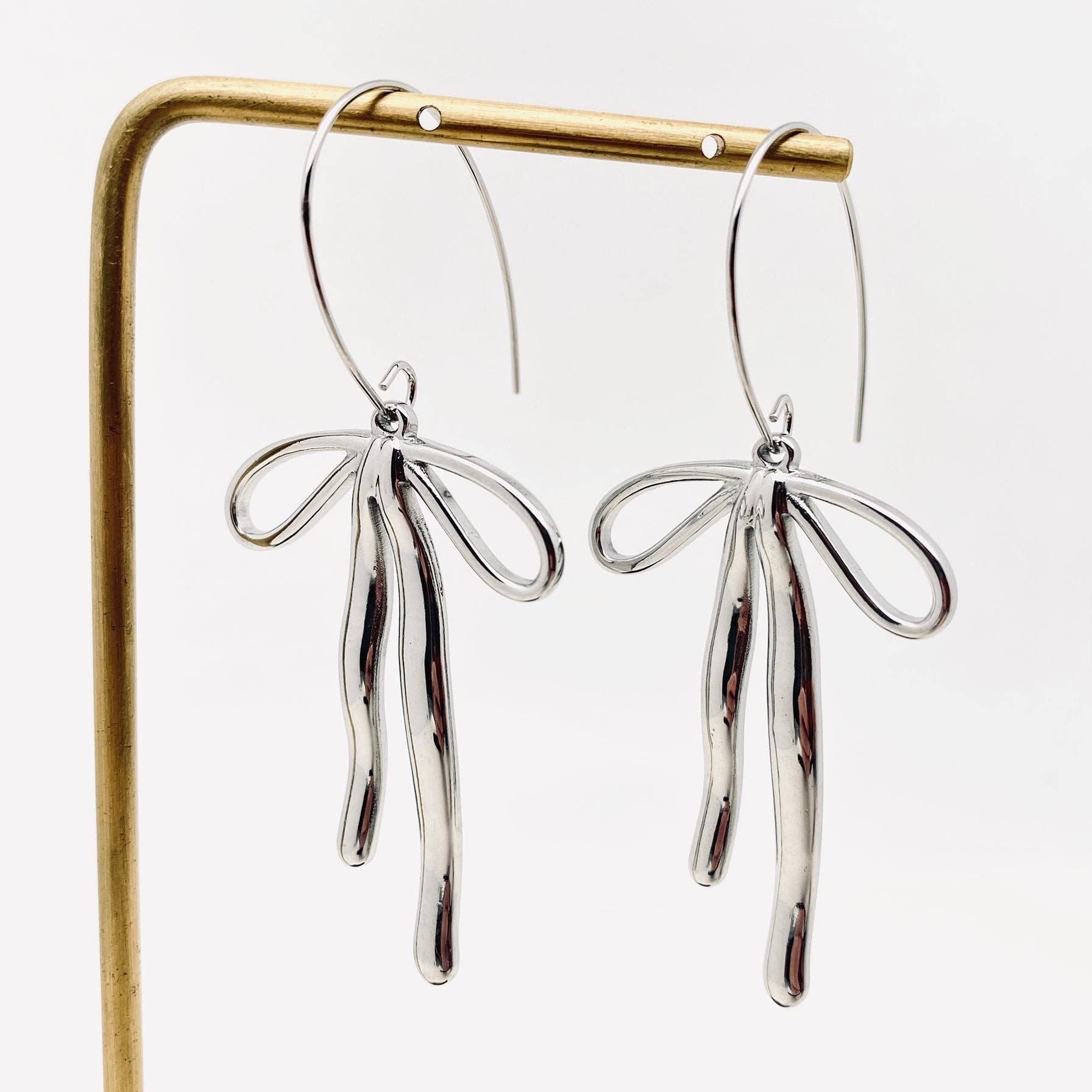 18k Gold Stainless Steel Bow Dangle Earrings - FGS