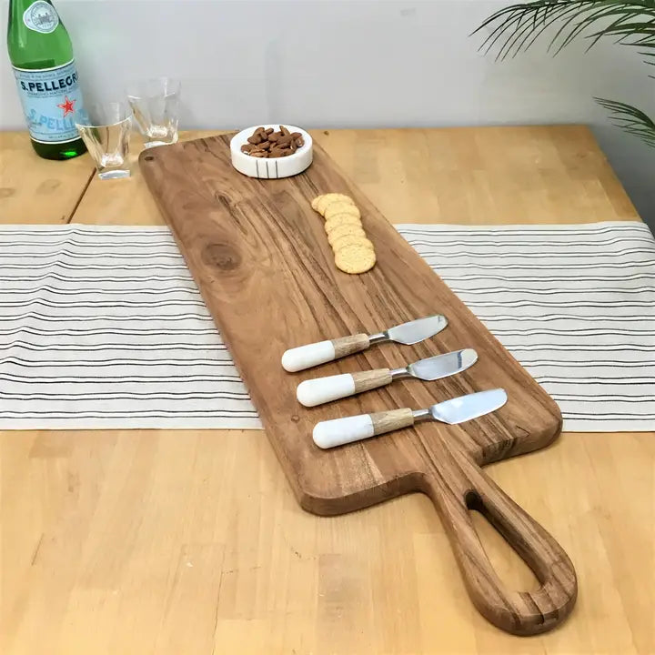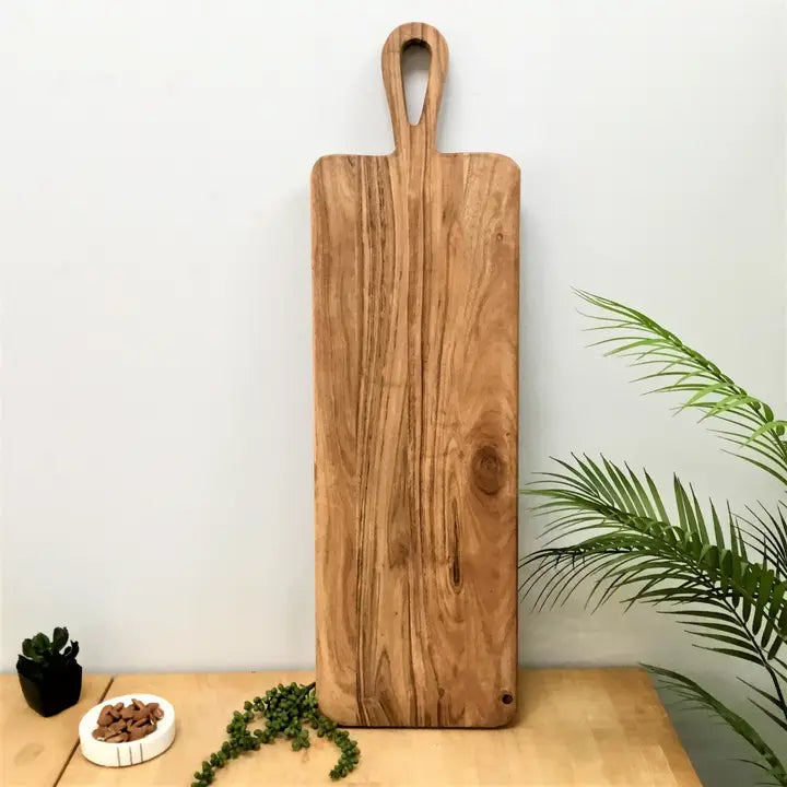 The LARGE Acacia Wood Rounded Rectangle Cutting Board with Handle is a versatile and stylish addition to any kitchen. Crafted from high-quality acacia wood, this cutting board is not only durable but also adds a touch of natural beauty to your countertop. The rounded rectangle shape provides ample space for chopping, slicing, and dicing a variety of ingredients. The convenient handle allows for easy transportation and storage. Whether you're preparing a family meal or hosting a dinner party, this cutting board is the perfect tool for all your culinary needs.