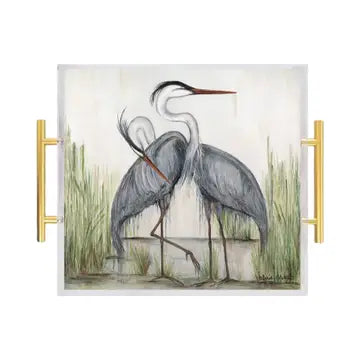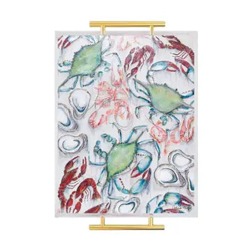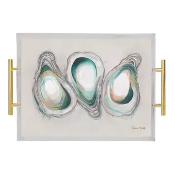Crafted with versatility in mind, this acrylic tray is a perfect companion for serving, beautifying your coffee table, accentuating your kitchen counter, or simply serving as an eye-catching home decor accent. Elevating the ambiance of your living space, our line of trays goes beyond utility to infuse a sense of elegance and artistic flair into your home. The artwork is precision-printed on the tray's backside, ensuring a foodsafe and water-resistant serving surface. All our trays are meticulously designed and printed in Shreveport, La, embodying a commitment to quality and craftsmanship. 12" X 12" with Brass Handles. Clean with a soft cloth, using soap and warm water. Avoid scrubbing or using harsh chemicals. Do not put in dishwasher.