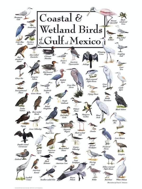 This 550 piece puzzle features 73 bird species, both common and exotic, found in the coastal and wetland areas throughout the Gulf region, from Texas in the west, Louisiana, Alabama, and Florida.