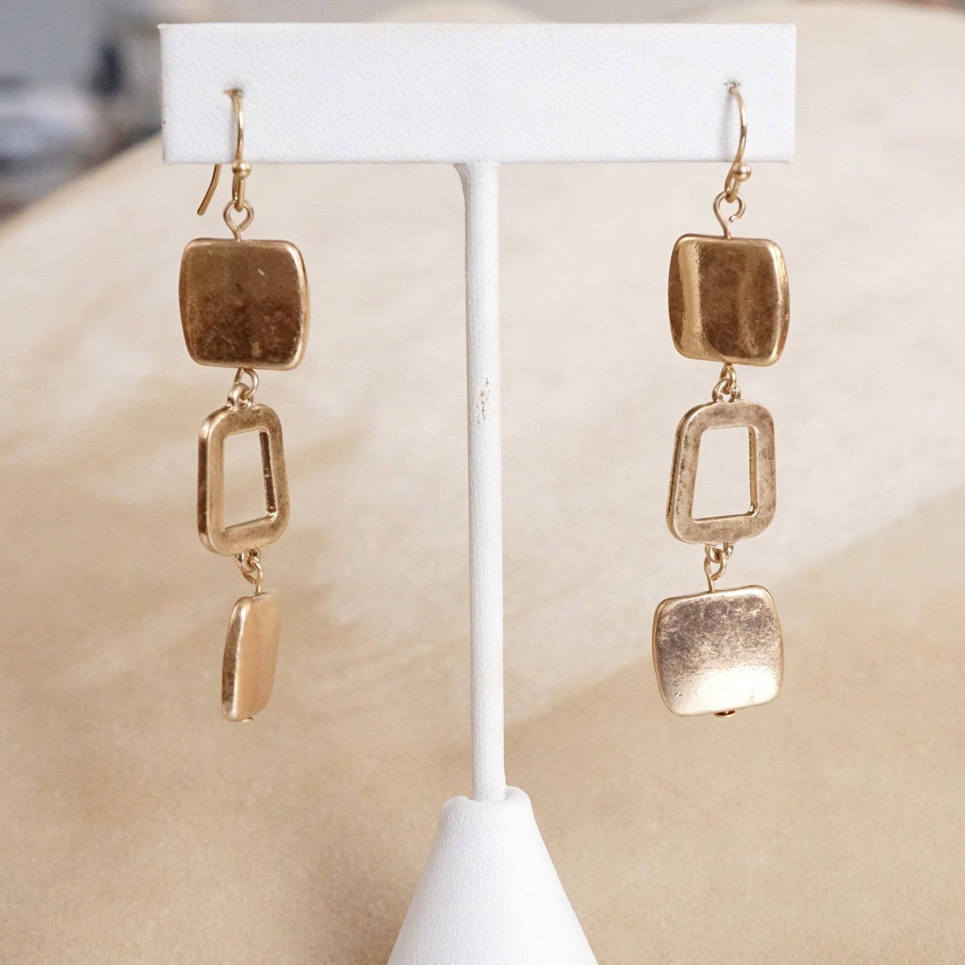 Boho Square Dangle Earrings – Worn Gold Tone
