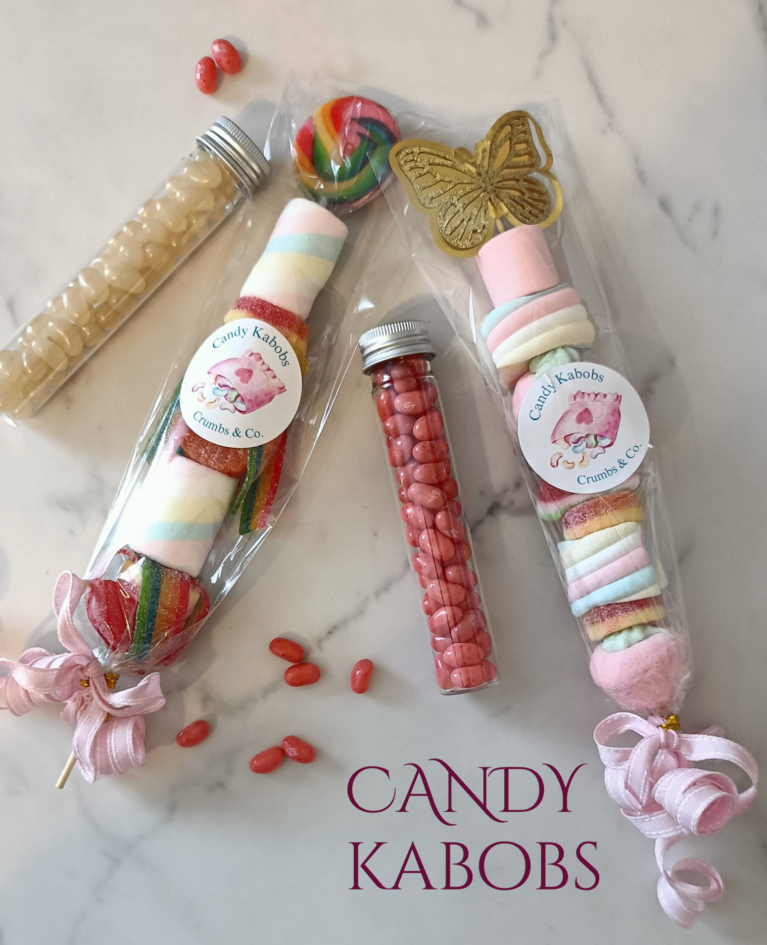 Great for birthdays, bbq’s, holidays, baby showers and even cocktail hour! The size and presentation of the candy kabobs makes them a favorite. These can even be used in cocktails or in a Shirley Temple or Sprite for kids. Vodka, tequila and rum all go well with these sweet candy skewers.