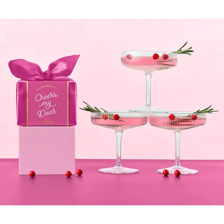 It's always time to celebrate with a luxe Champagne Kit by Pinch Provisions! Make this Easter something to remember with our delightful assortment of effervescent essentials is ready to gift in a Furoshiki-style bow box. You'll be raising a glass to these 11 must-haves, including 2 mini stemless champagne glasses, a bottle stopper, confetti, coasters (2), swizzle sticks (2), edible gold glitter, a champagne cocktail recipe booklet, and a "ring for champagne" bell.