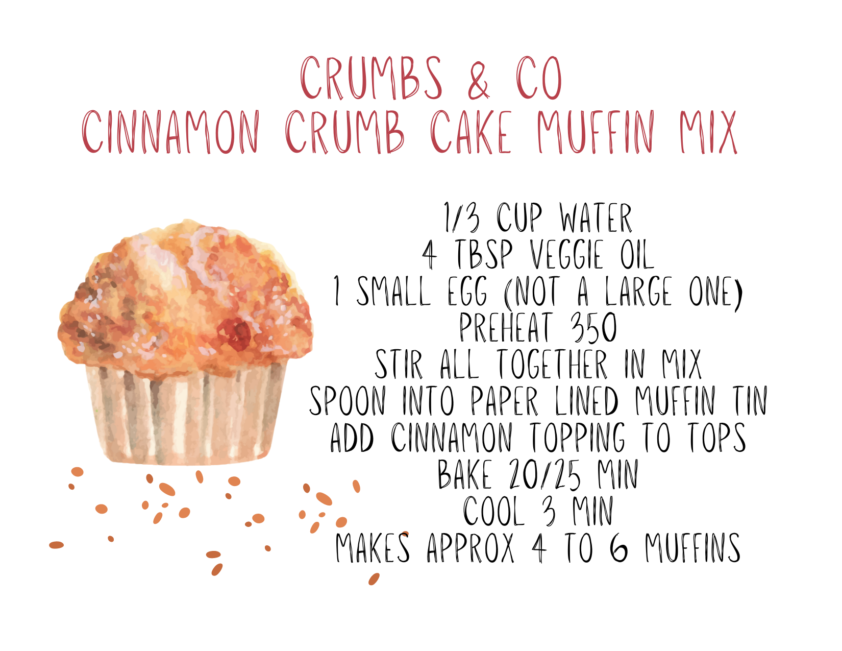 Cinnamon Crumb Cake Muffins are soft, tasty muffins with sweet cinnamon and sugar. Have one of these muffins with that cup of tea or coffee! Super easy recipe to make too! Comes in these cute, keepsake drawstring bags with a recipe card inside!