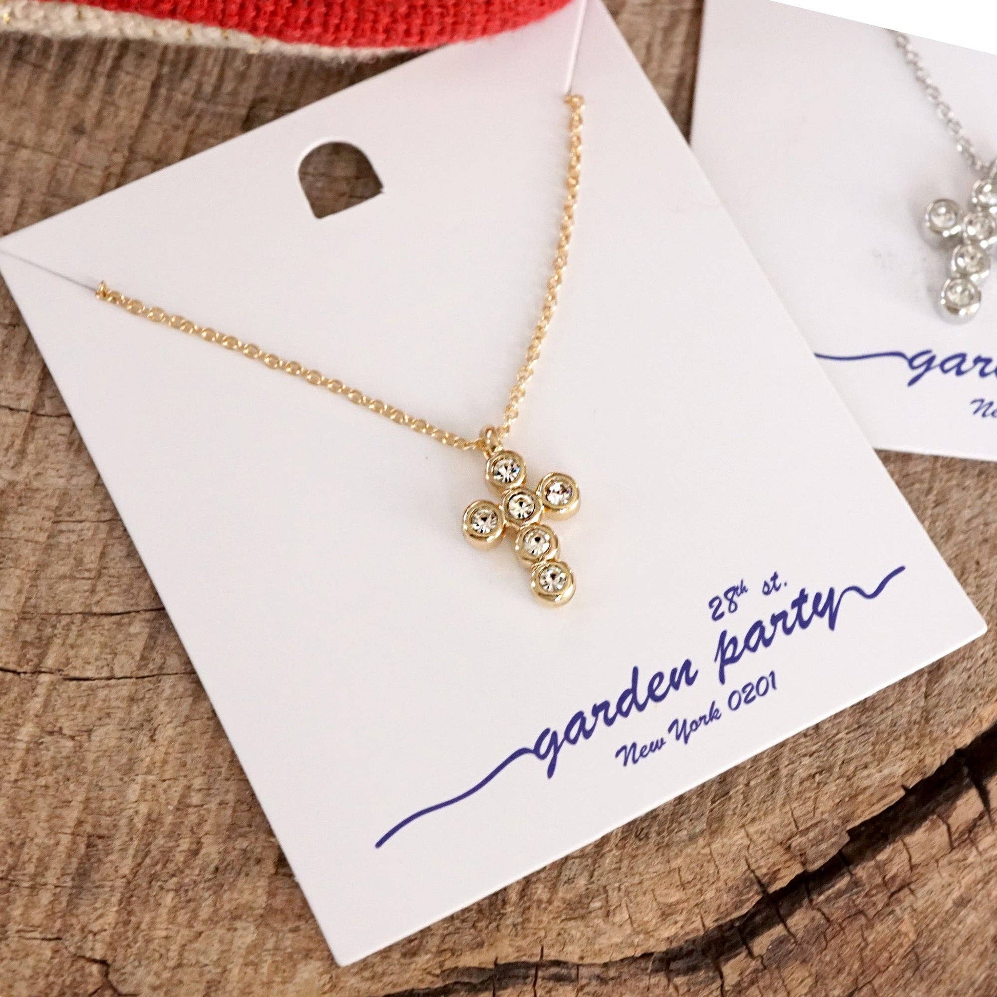 Classic Dainty Cross and Crystal Necklace – Gold and Silver Tones