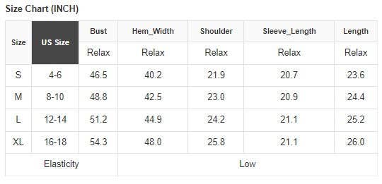 Small 0-4, Medium 6-8, Large 10-12, XL 14-16, 2X 18-20