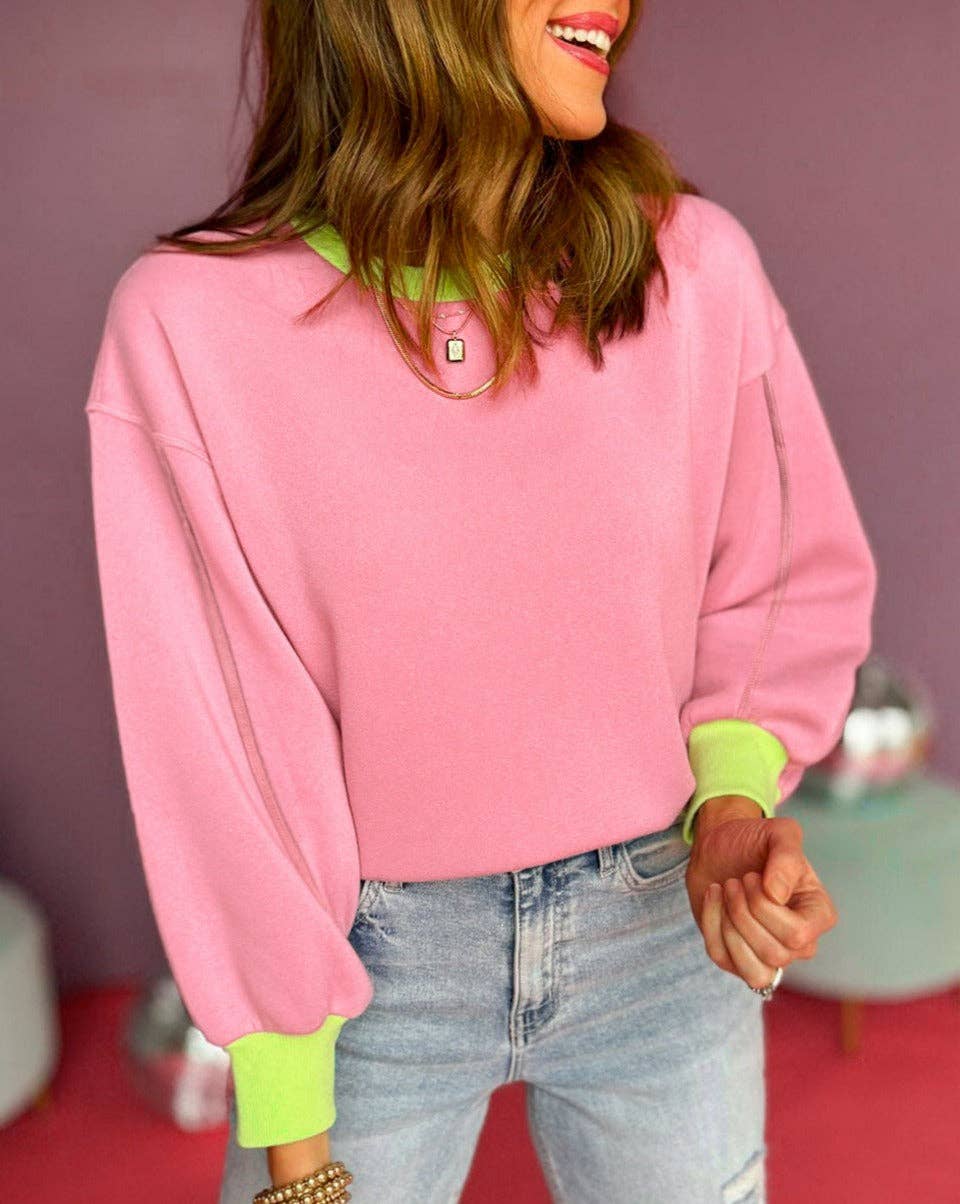 This bright & fun sweatshirt has a boxy fit with drop shoulders. & the side slits add subtle detail. Pair it with casual pants for a stylish and comfortable look.