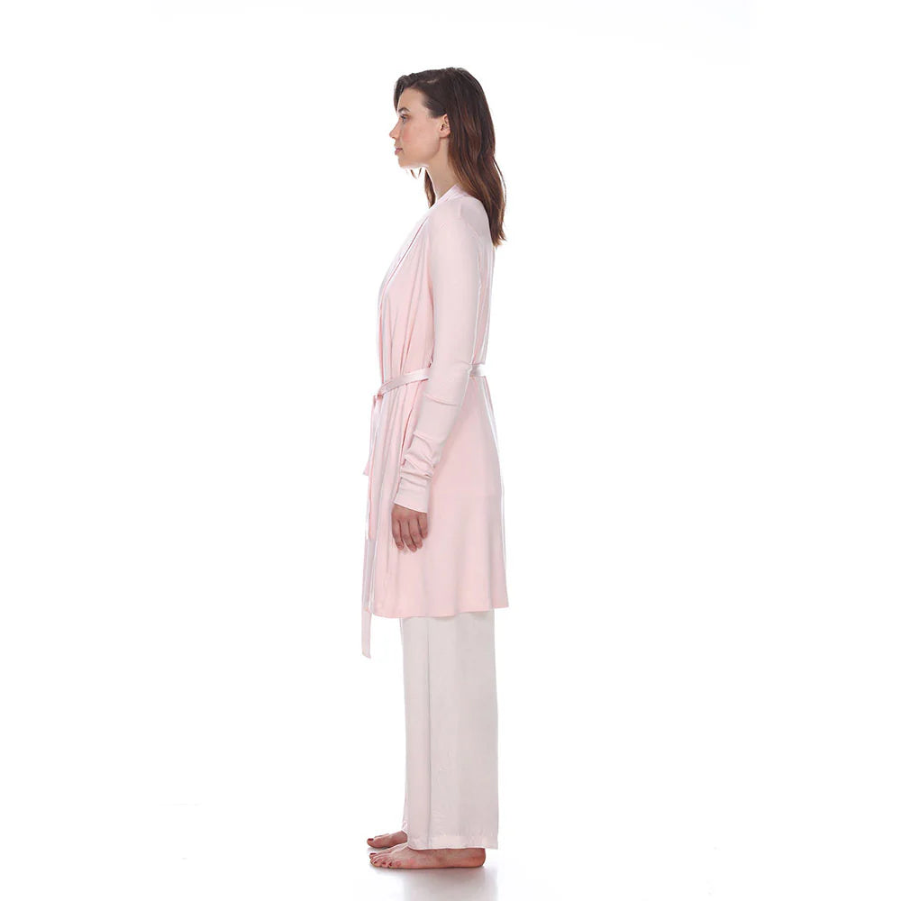 PJ Harlow-"Elijah" Rib knit long-sleeve robe with satin trim & belt