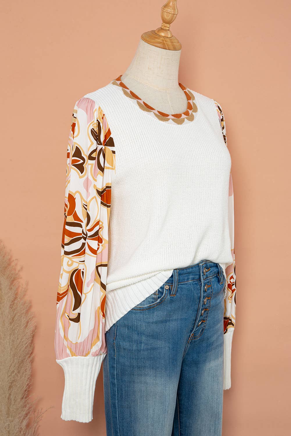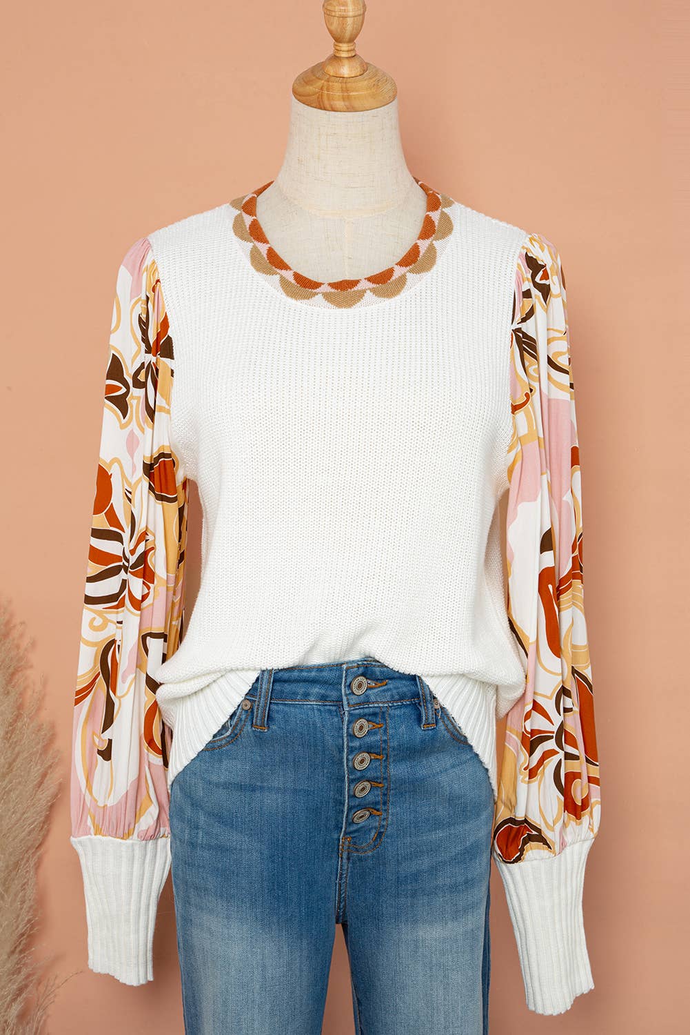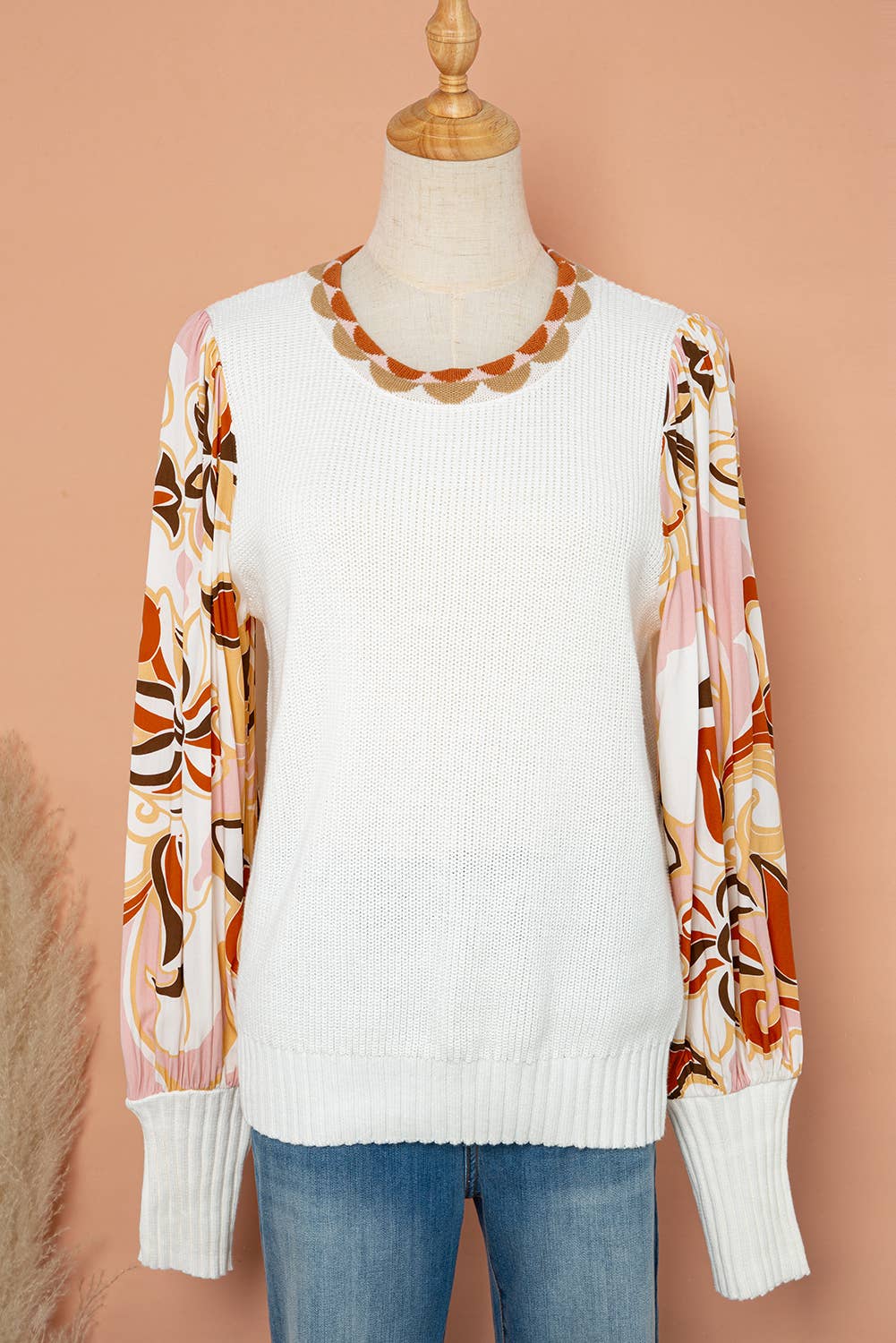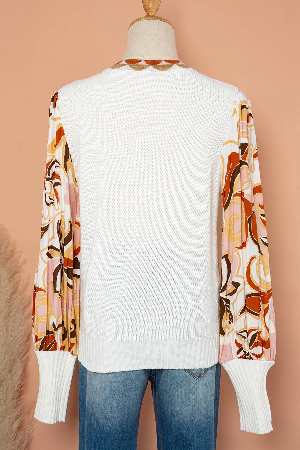 Floral Print Bishop Sleeve Knit Sweater