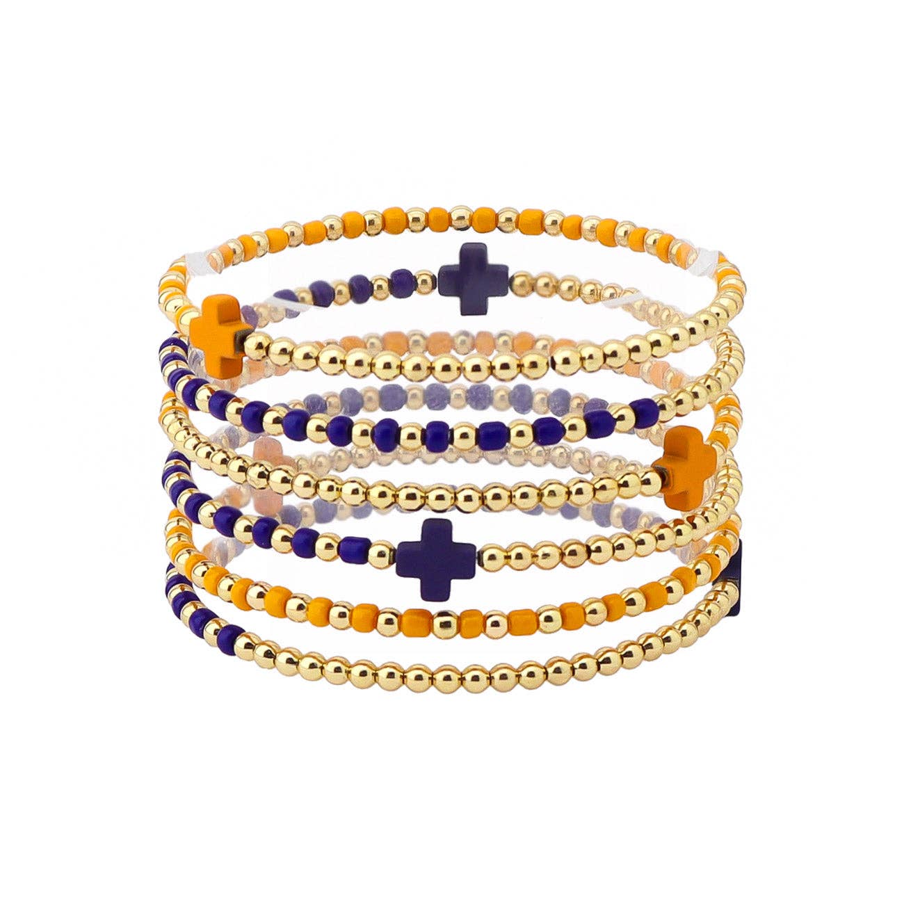 Gameday Set of 6 Orange and Navy Beaded Stretch Bracelets 6065