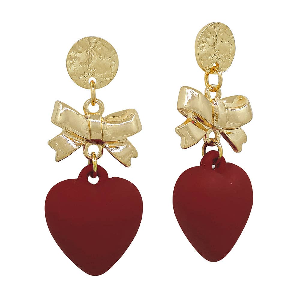 Hammered Circle Stud with Gold Bow and Maroon Heart 2" Drop Earring, Gameday 5081