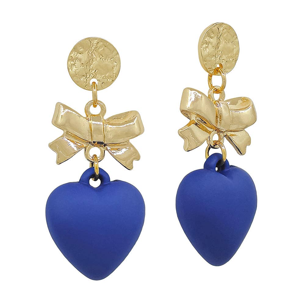 Hammered Circle Stud with Gold Bow and Navy Heart 2" Drop Earring, Gameday 5081