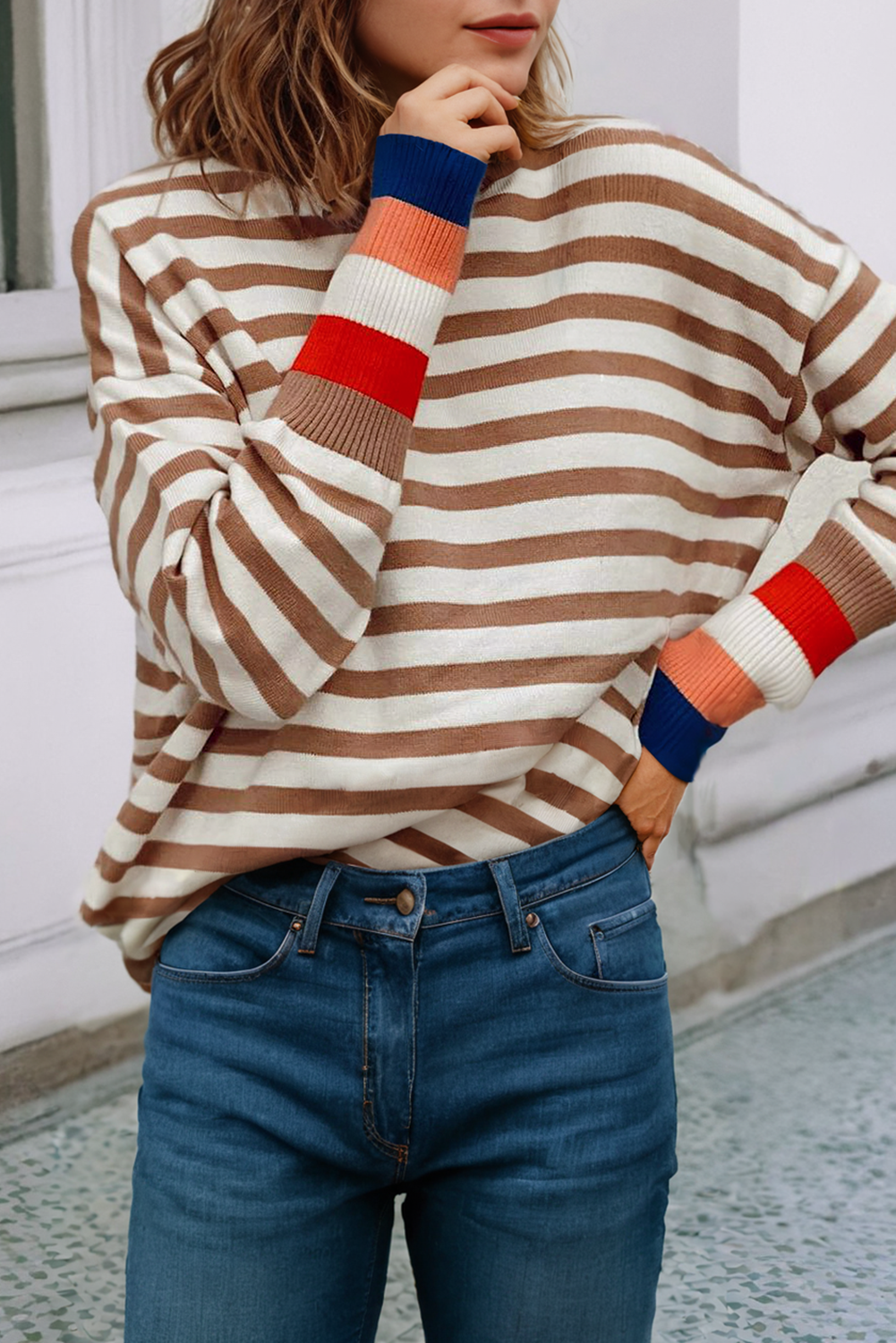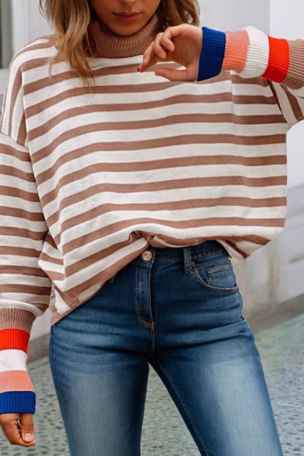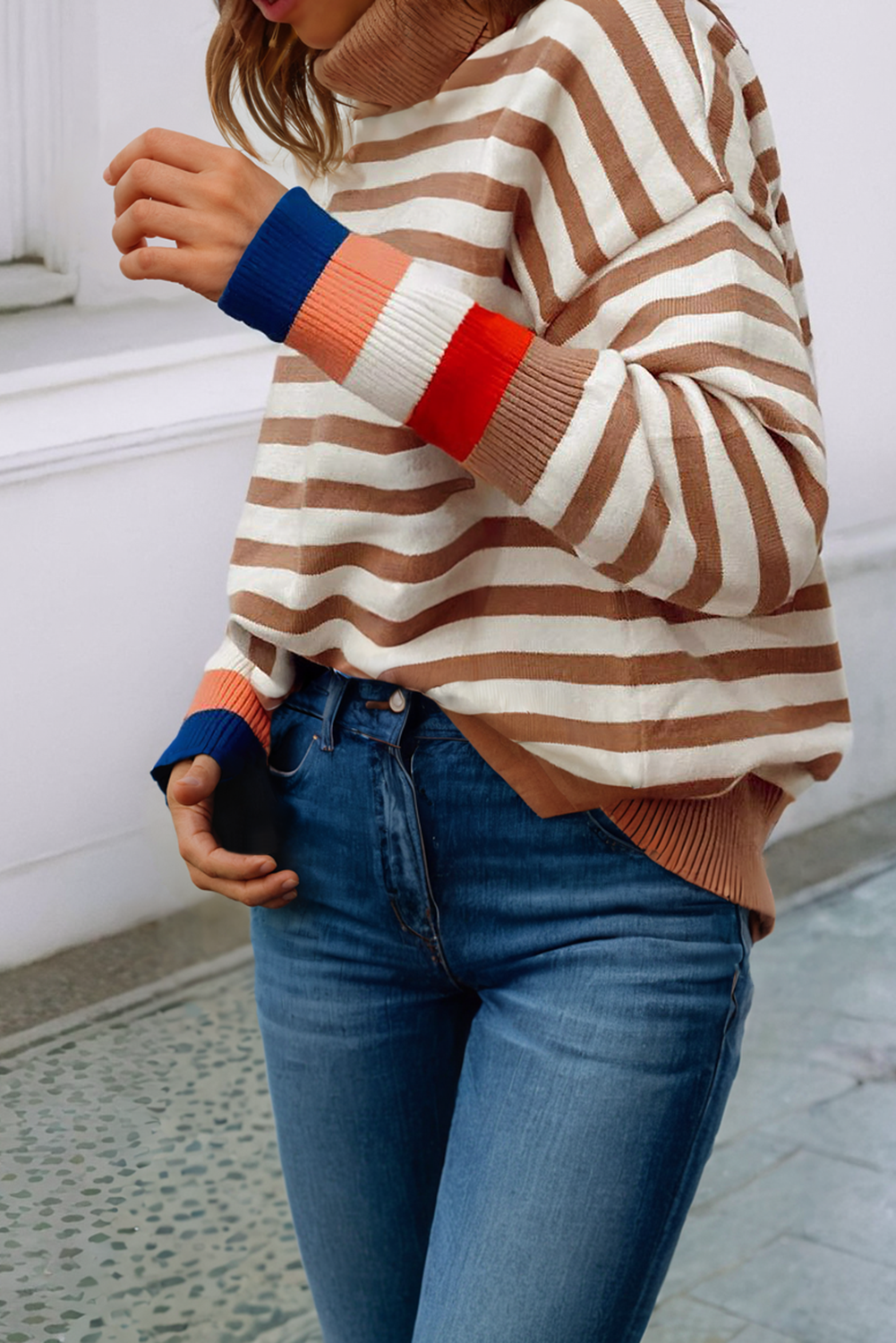 Colorblock Bishop Sleeve Turtleneck Sweater