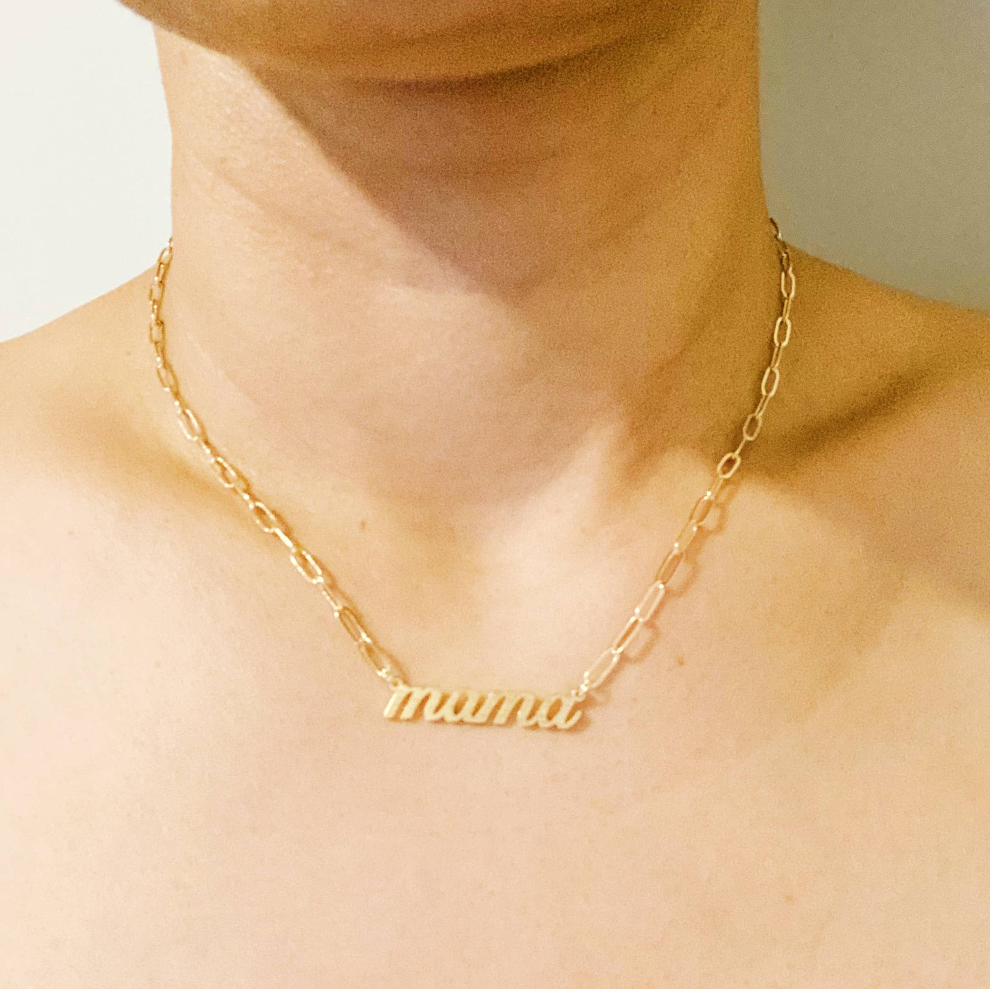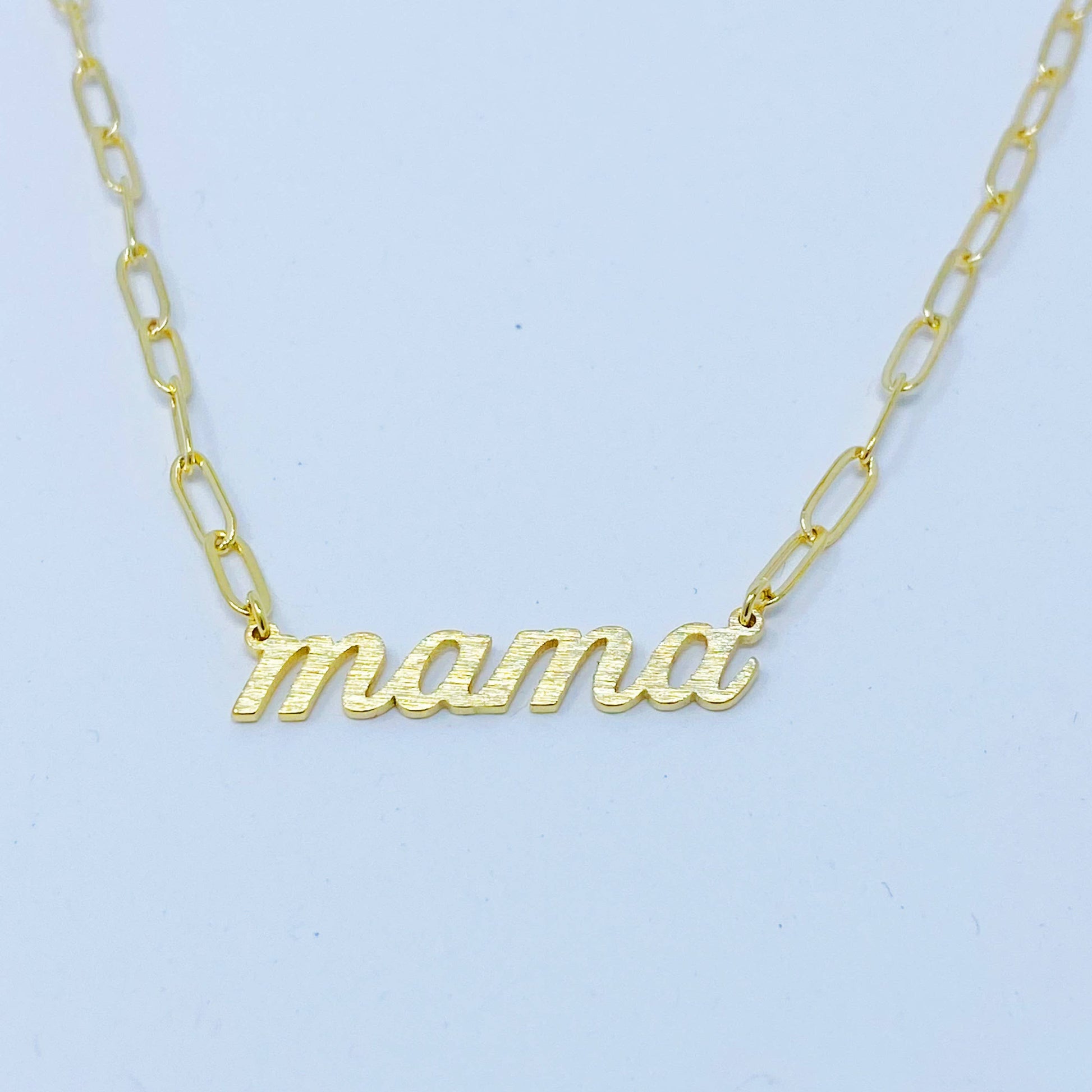 The go-to gift for any mom! The perfect mix of dainty and edgy! Script lettering "mama" on a trendy chain necklace. Perfect for everyday wear!