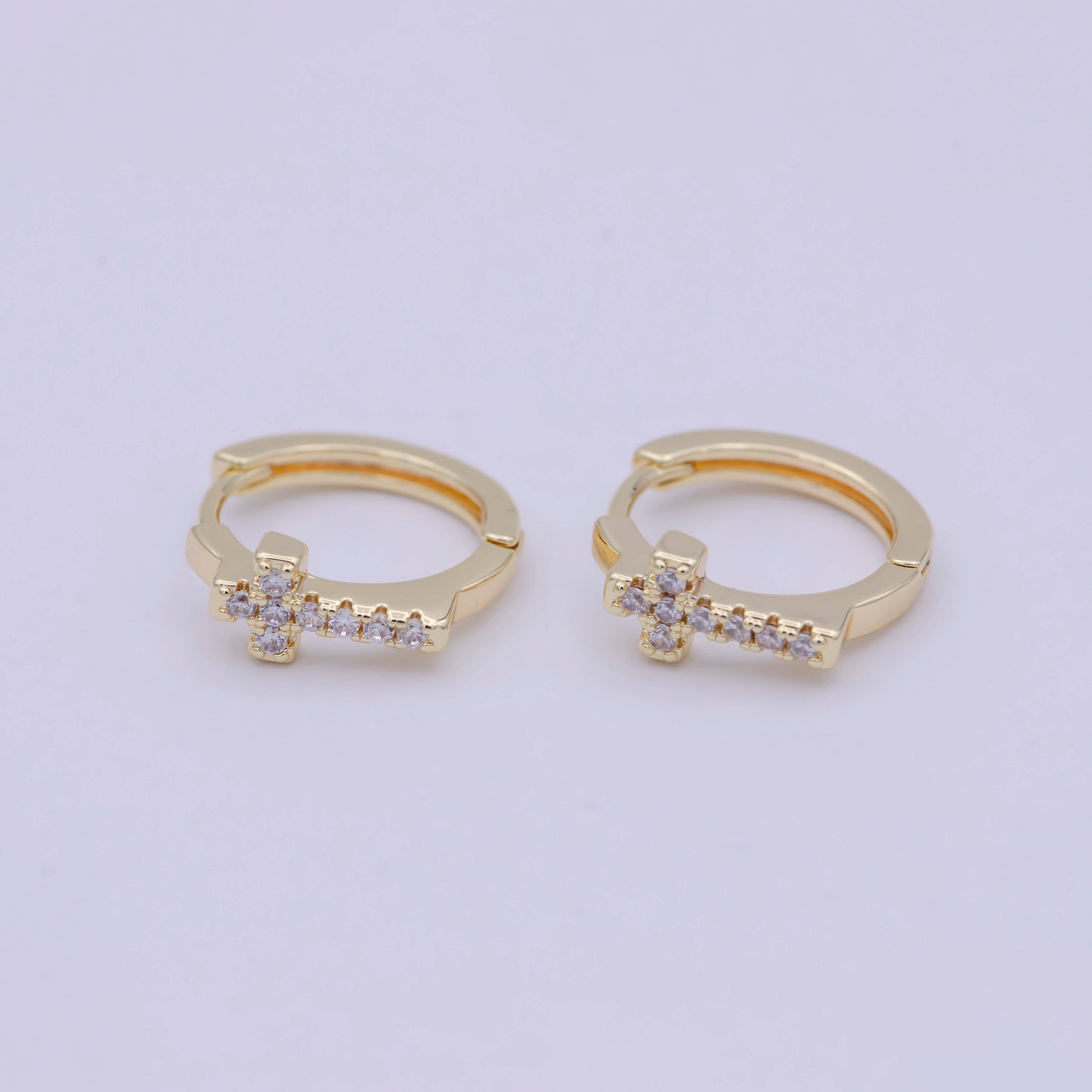 Minimalist Cross Gold Hoop Earring Religious Jewelry Wholesa