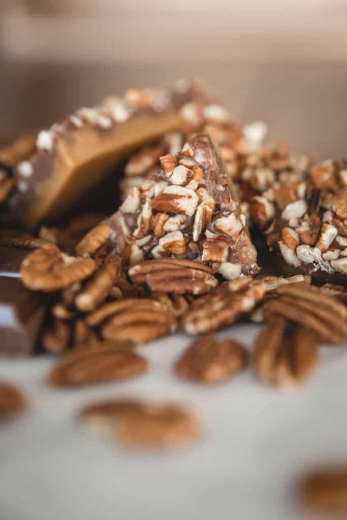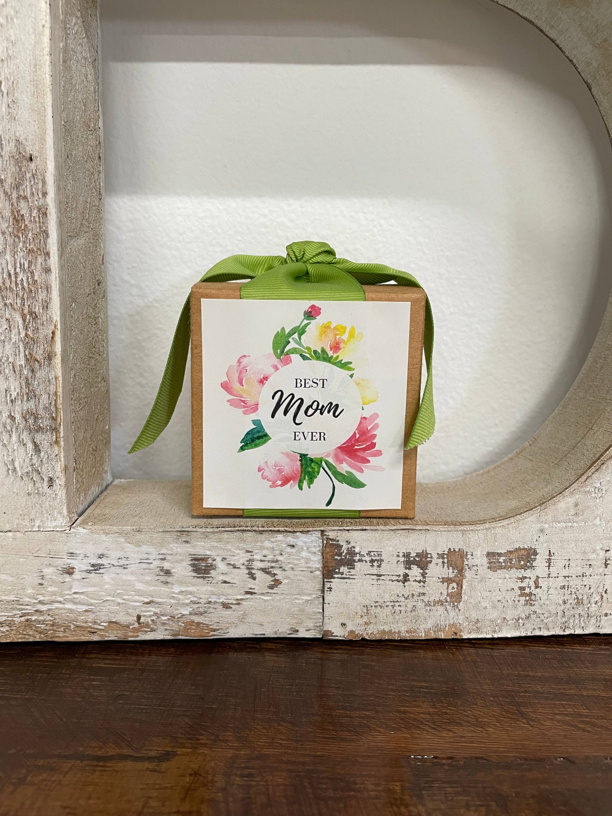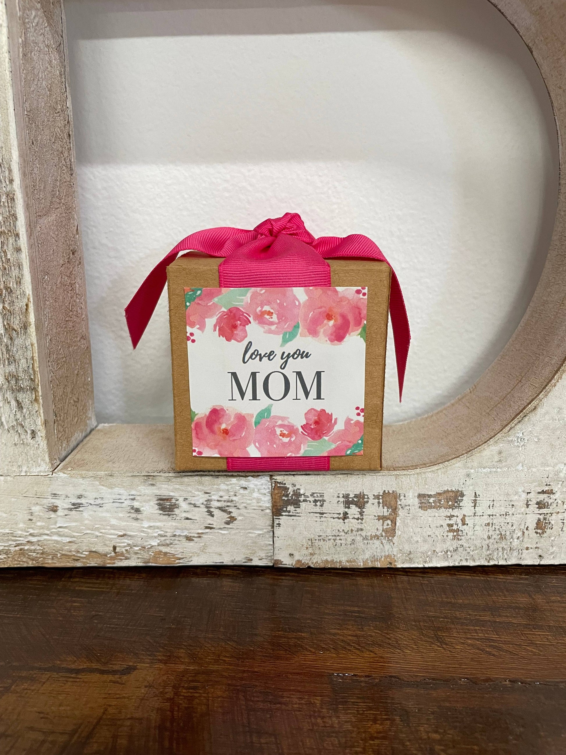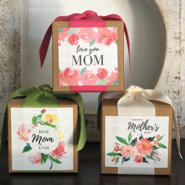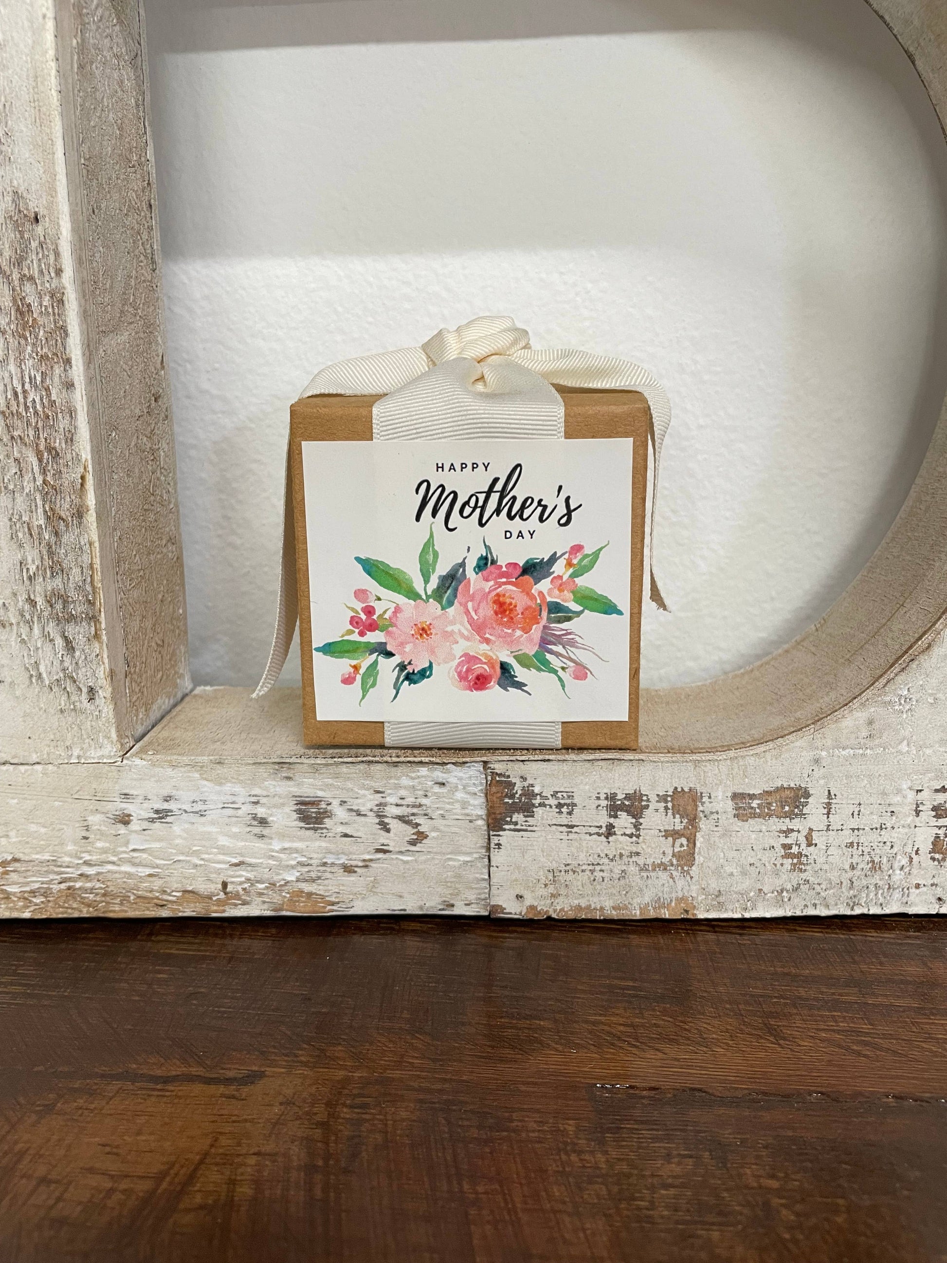 Please specify any request for customization in the design combination or changes to the ribbon color in the order notes, thank you. Enjoy our award-winning B. Toffee in our darling custom Mother's Day Kraft Boxes. They come in an assortment of three designs. Each batch is handcrafted to perfection with rich savory butter, sweet domestic sugars, premium Guittard Milk and Callebaut Dark chocolates, topped with superior roasted pecan nuts. Defines B. toffee, Simply the Best!