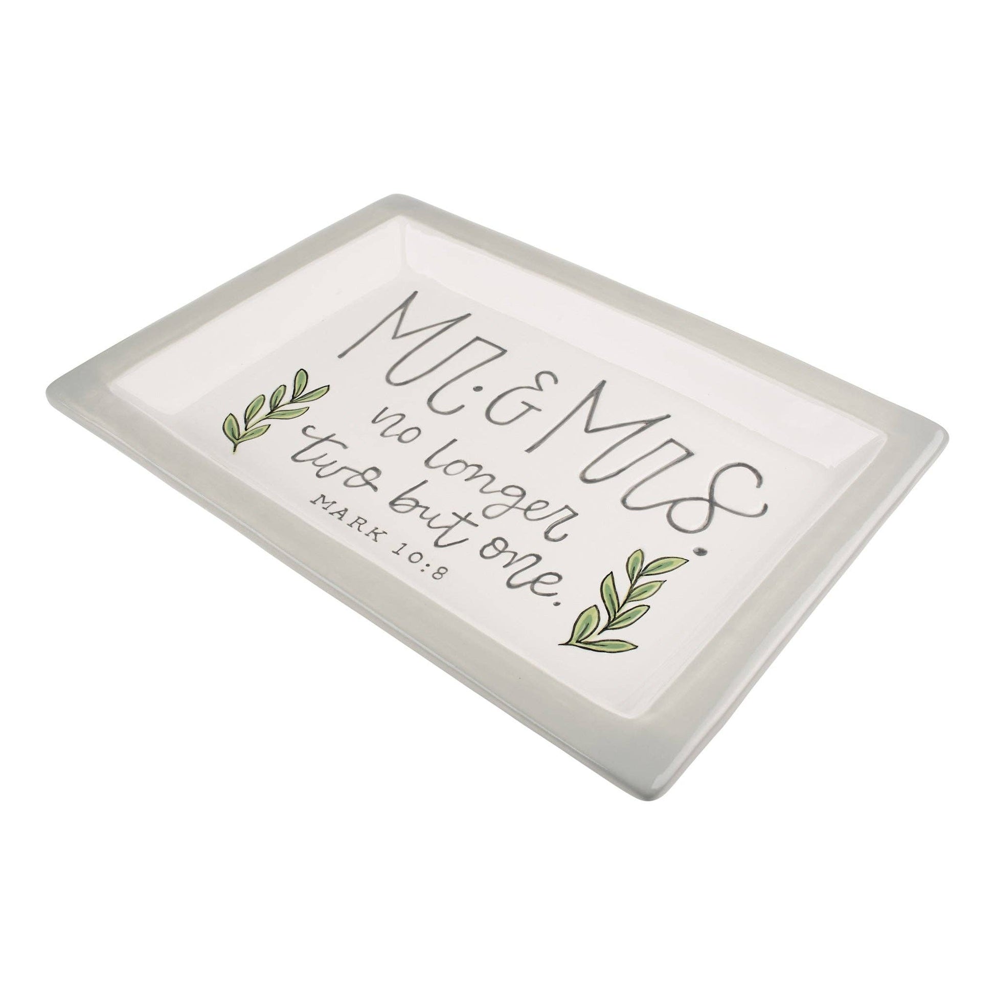 Celebrate the most blessed of unions with this sweet, Mr. and Mrs. trinket tray! Ideal for newlyweds that are building a life and home together!
