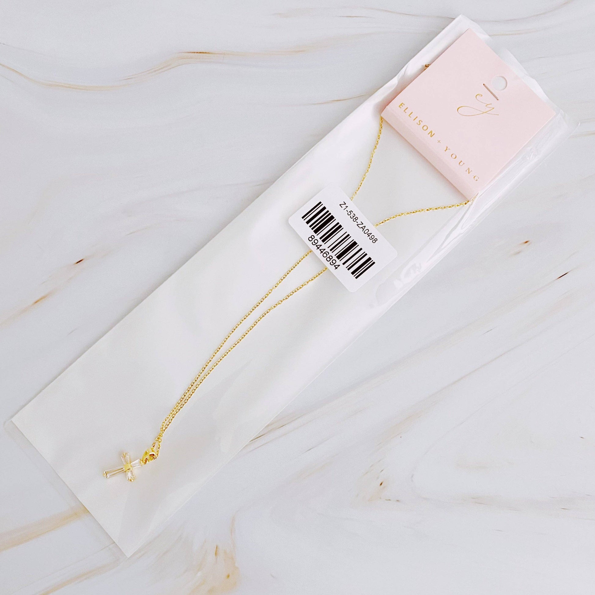 This My Dear Crystal Cross Necklace is the perfect accessory for any look. Crafted with a beautiful, clear crystal cut into a classic cross shape, the necklace adds subtle elegance to your style. The delicate chain adds a dainty touch, making it a timeless piece you can wear for any occasion.