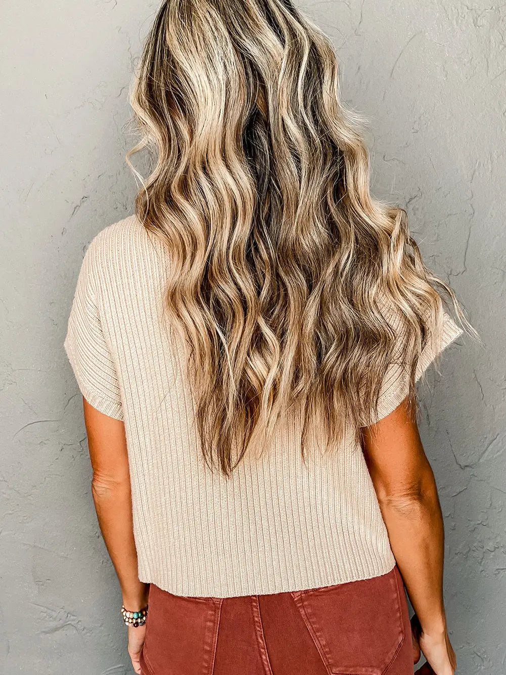 Add a versatile, modern twist to your wardrobe with our Oatmeal Short Sleeve Sweater. Perfect for transitional weather, it offers both warmth and comfort with its soft, stretchy knit design. Stay cozy and stylish all season long.