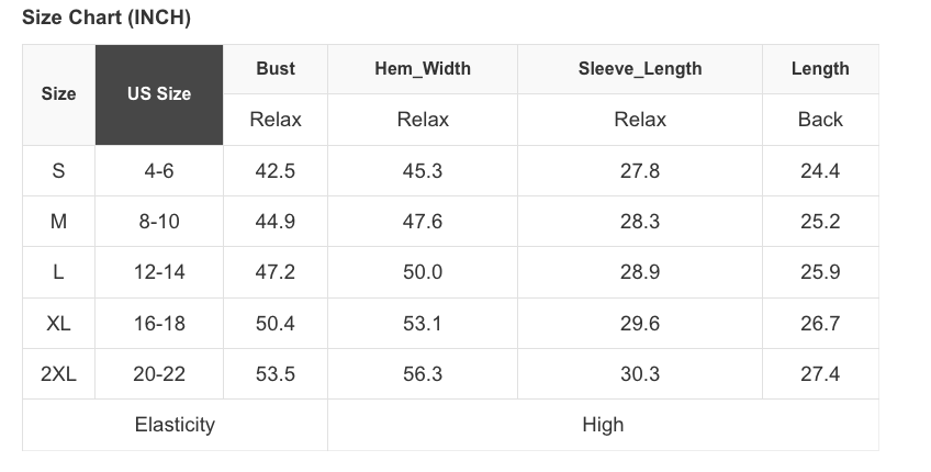 US Size Range. Small 0-4, Medium 6-8, Large 10-12, XL 14-16, 2X 18-20