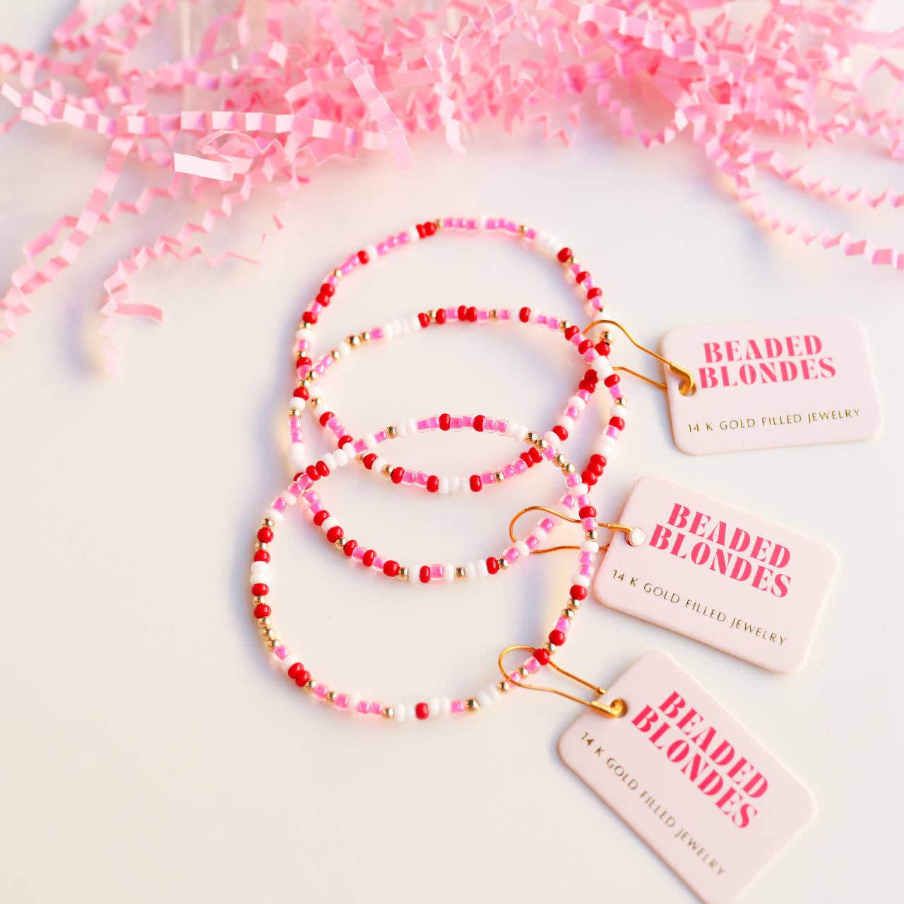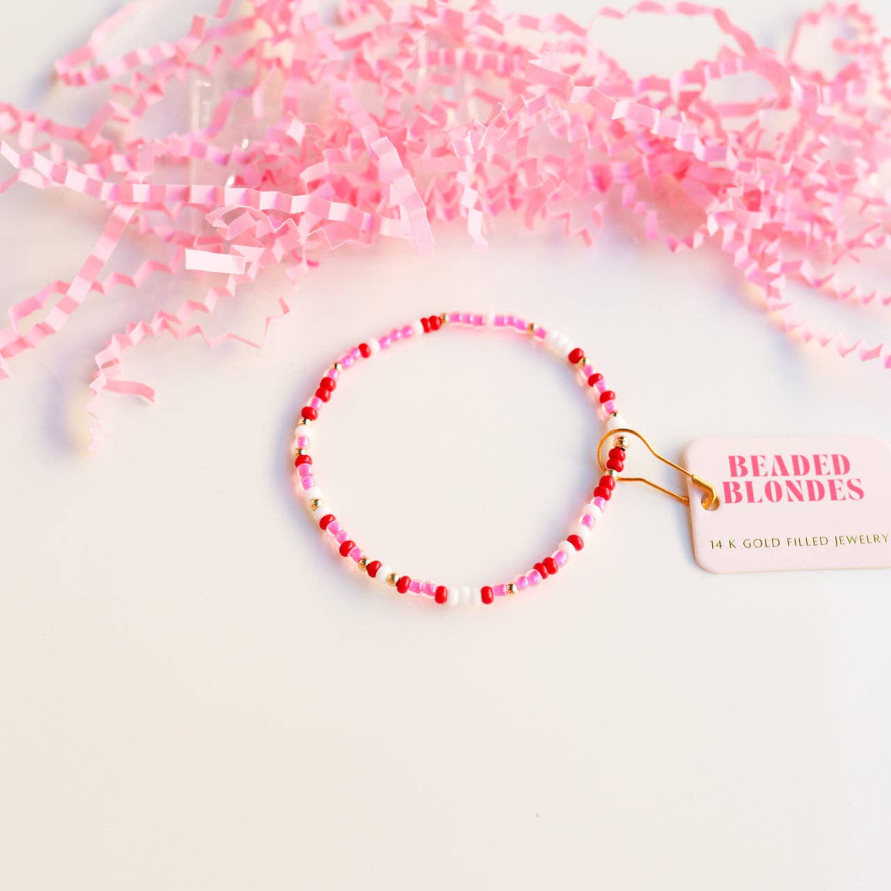 Beaded Blondes Red Pink & White Sprinkle Bracelet