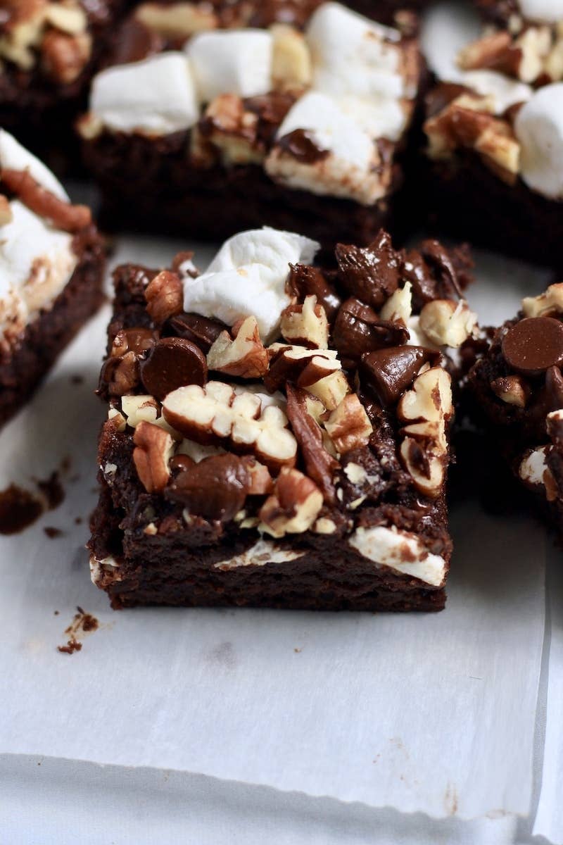 What better combo than chocolate brownies topped with toasted marshmallows, honey grahams and walnuts? I mean, really!