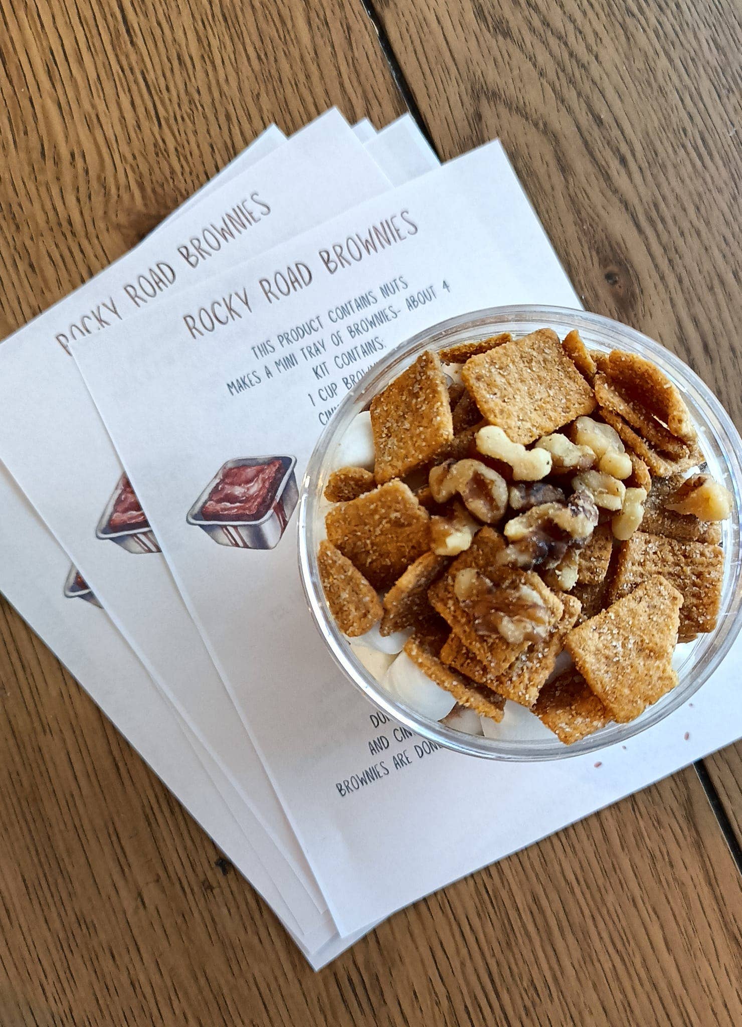 These are as pretty on store shelves as they are tasty!.This jar will make a small tray of approx 4 to 5 fudgy brownies. Comes with easy instructions and ingredients listed!