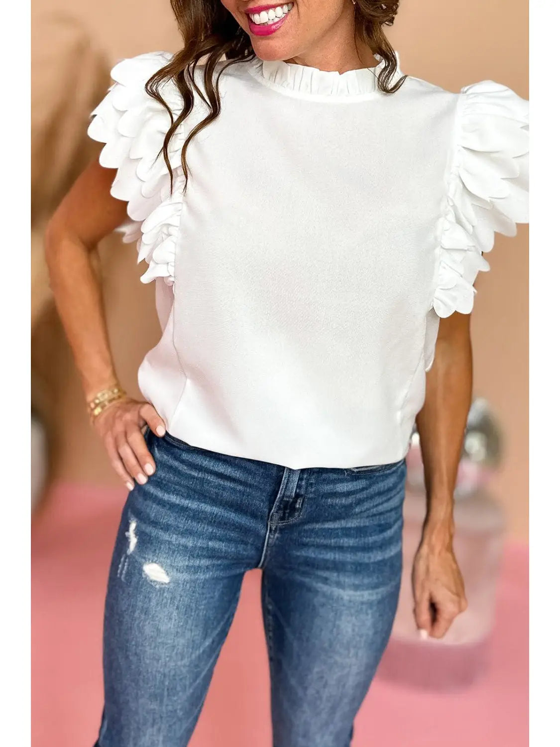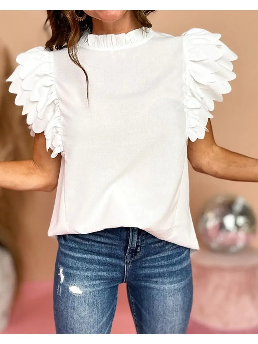 Scalloped Ruffle Short Sleeve Top