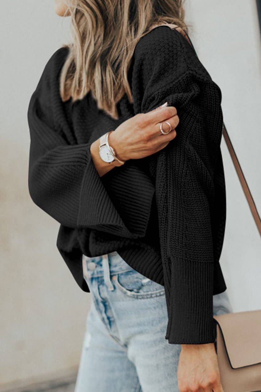 This knit sweater features slit cuffs for added chicness. Its fine knitwear provides a textured, soft, and comfortable feel. The relaxed drop shoulders add a laid-back style, with a loose fit.