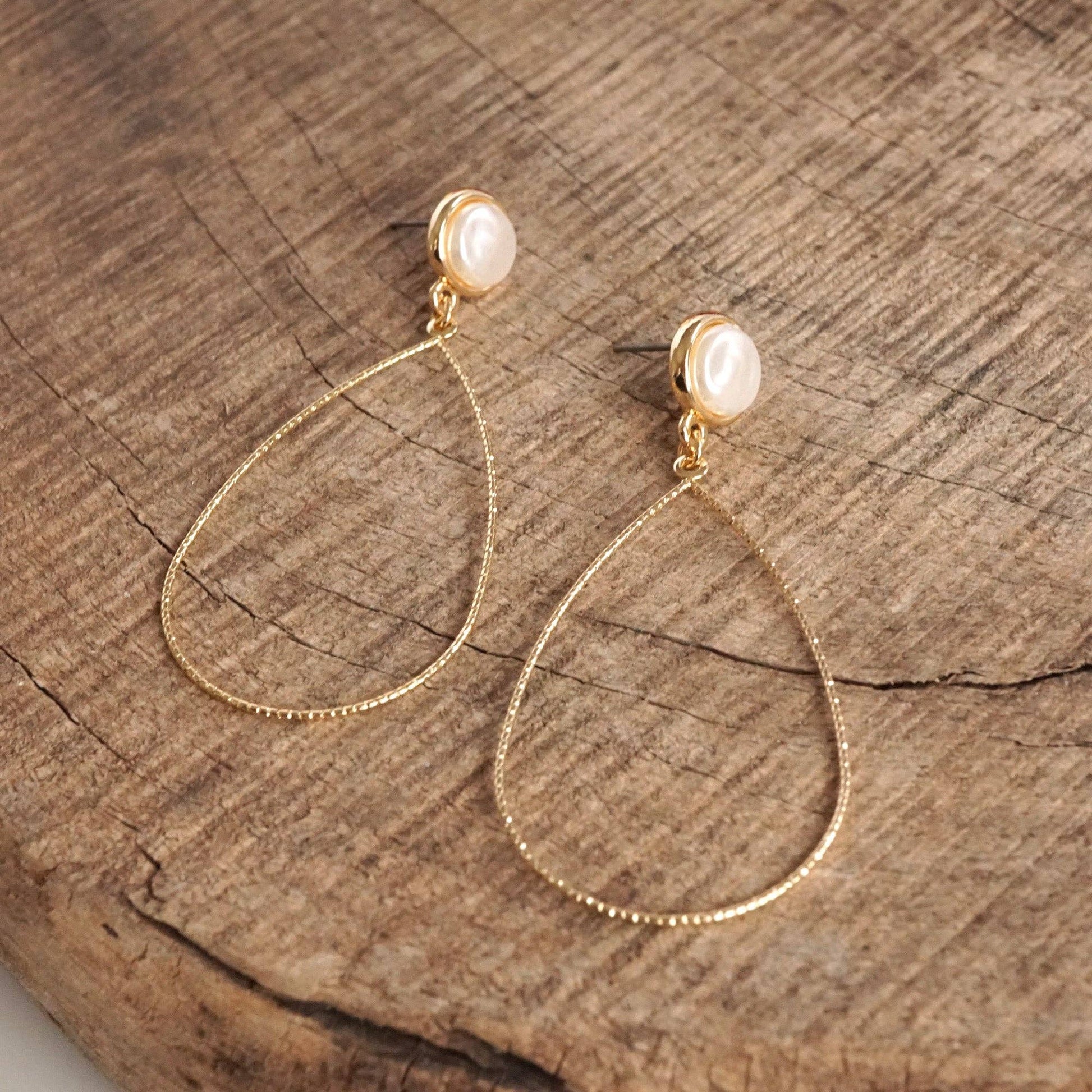 Gold tone teardrop sparkly serrated wire