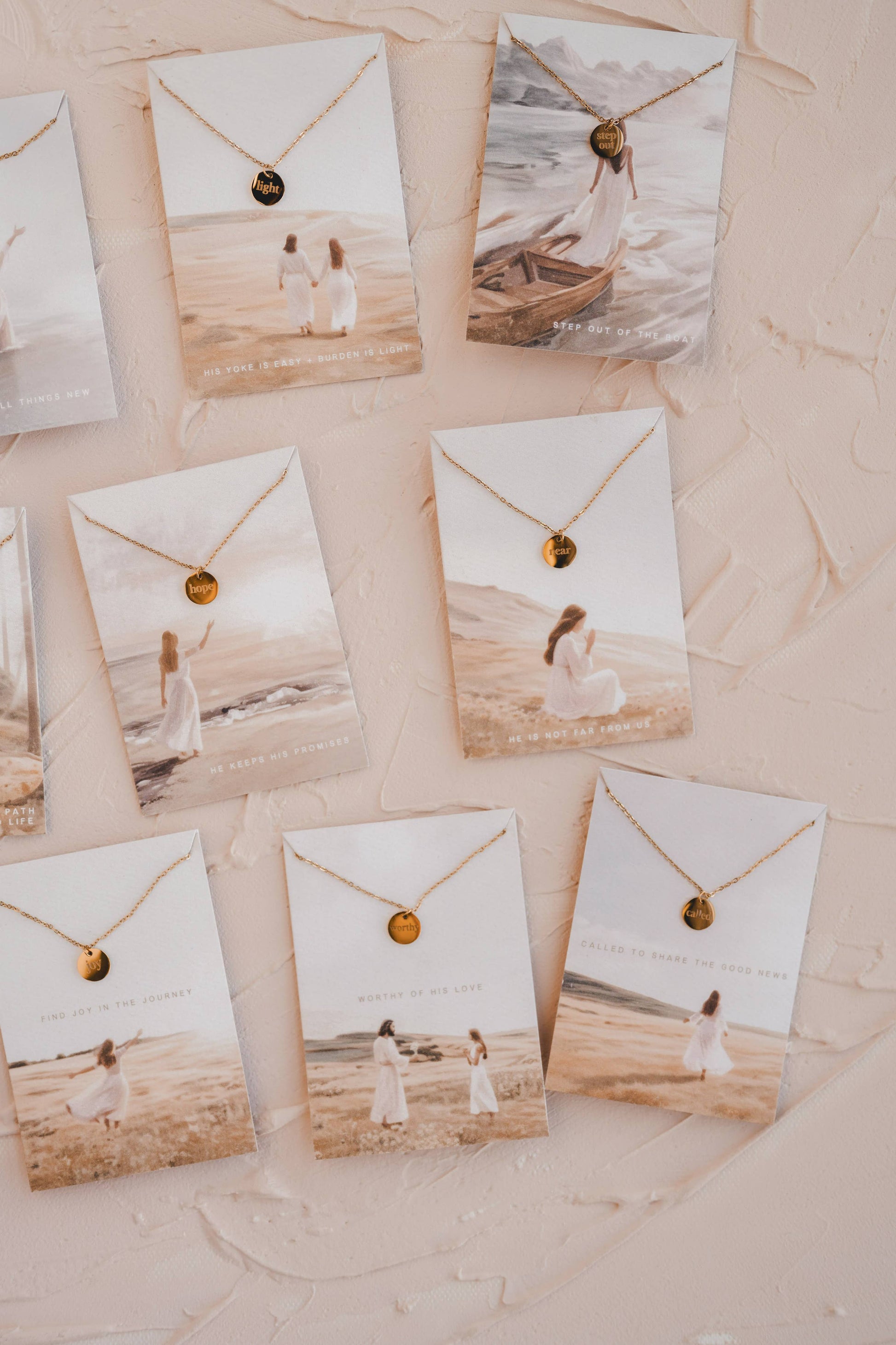 Details: "Worthy" on one side and "Isaiah 43:1" on other 14kt Gold Plated Tarnish + Water Resistant Hypoallergenic 16-18" Displayed on a textured card featuring beautiful artwork by Dear Heart Designs. Full verse reference included on the back of the card.